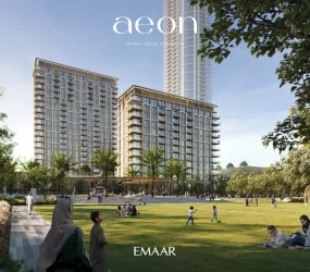 Residents of Aeon are treated to a visual feast from dawn to dusk. Extending views of the captivating Dubai Creek Canal, verdant parks, and Dubai’s skyscrapers, an intricate weave of thriving energy and natural beauty unfolds. Aeon’s architecture speaks the language of modern city legends. Leveraging raw, authentic materials sourced locally, this edifice reinterprets Dubai’s architectural narrative, blending the city’s rooted legacy with tomorrow’s cityscapes.