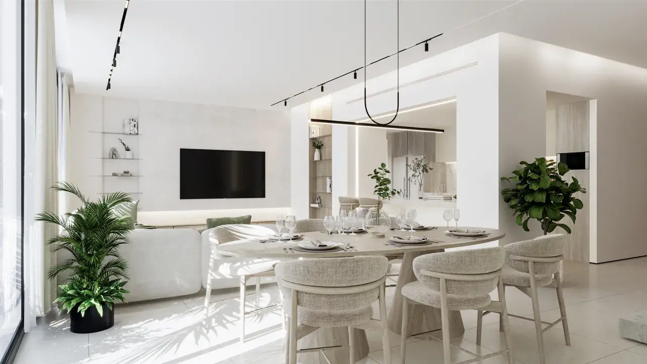 The interiors at Aila Homes are thoughtfully designed to support family life and everyday comfort. Living spaces feature floor-to-ceiling windows, sunlit interiors, and a calm, modern palette dominated by minimalist white and green tones. The townhouses are delivered without furniture, with an emphasis on high-quality finishes using modern materials. Refined detailing, functional layouts, and seamless flow between spaces create timeless interiors that balance elegance, practicality, and contemporary living.
