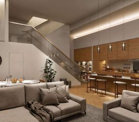 Enjoy a spacious, contemporary living area with corner views outside, as full-height windows bathe the space in natural light. Loft apartments feature a stunning centrepiece staircase leading to two generous double bedrooms and an elegant bathroom.
