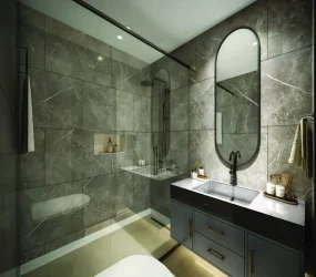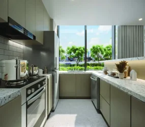 Interiors are designed around refined aesthetics and immersive comfort, blending contemporary materials, soft textures, curated lighting, and elegant details. Lobbies showcase marble finishes and artistic compositions, while apartments feature modern kitchens, spa-inspired bathrooms, and fluid interior planning. Although the brochure does not list specific brands, the finishing standards align with high-end hospitality specifications, emphasizing quality craftsmanship, harmonious palettes, and thoughtfully integrated smart-home capabilities. The result is a living environment defined by elegance, durability, and elevated sensory experience.