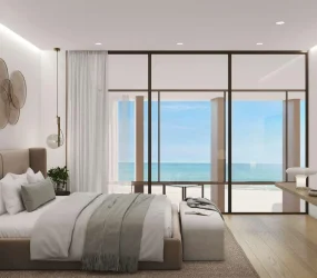 Beach House at Bay Residences is an exclusive beachfront development that redefines coastal living with its sophisticated architecture and direct access to pristine sands. Expansive terraces seamlessly connect indoor spaces to the beach, while panoramic ocean views frame every moment. The design blends elegance and comfort, creating a serene retreat that embodies the beauty of seaside life.