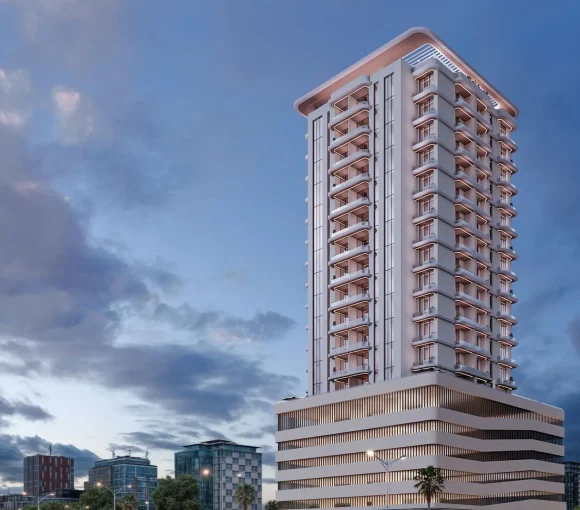 Celestara Residences is a refined residential development located in the heart of Jumeirah Village Circle, where contemporary architecture is inspired by the natural elegance of desert landscapes and sunrise tones. The building’s sculpted façade, defined by soft curves, sandy hues, and dune-inspired waves, creates a calm architectural presence that blends seamlessly with its surroundings. Developed by Al Dhana Real Estate Development, the project reflects a philosophy of serenity, balance, and understated sophistication within an urban setting.
