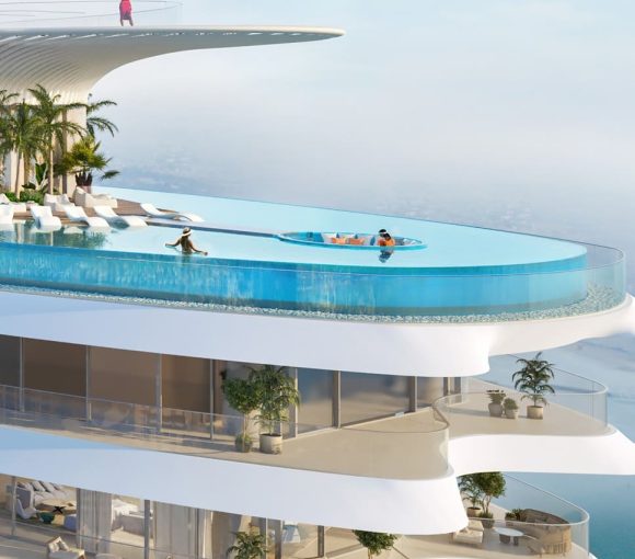 This water-inspired tower boasts 71 floors – each resembling a unique ocean wave. This is the latest chapter in Nakheel’s ambitious vision for extraordinary waterfront life in Dubai. The statement structure is sculped into a series vertical lakes, including a variety of communal pools and a selection of exclusive private pools. Explore sweeping terraces with glistening pools and verdant greenery, gaze out at breathtaking views over the sea and cityscape, and relax in wonderfully spacious homes with outstanding amenities. The exclusive collection of luxury apartments and exceptional amenity suite offers residents an ultra-chic, cosmopolitan lifestyle surrounded by art and beauty. Extremely spacious interiors lead out onto vast terraces embellished with lush greenery and unique private pools. Admire breathtaking views towards Burj Al Arab, Burj Khalifa, Palm Jumeirah, and Ain Dubai as you relax and breath in the fresh sea air. Each exclusive apartment enjoys either 180- or 360-degree panoramic views.