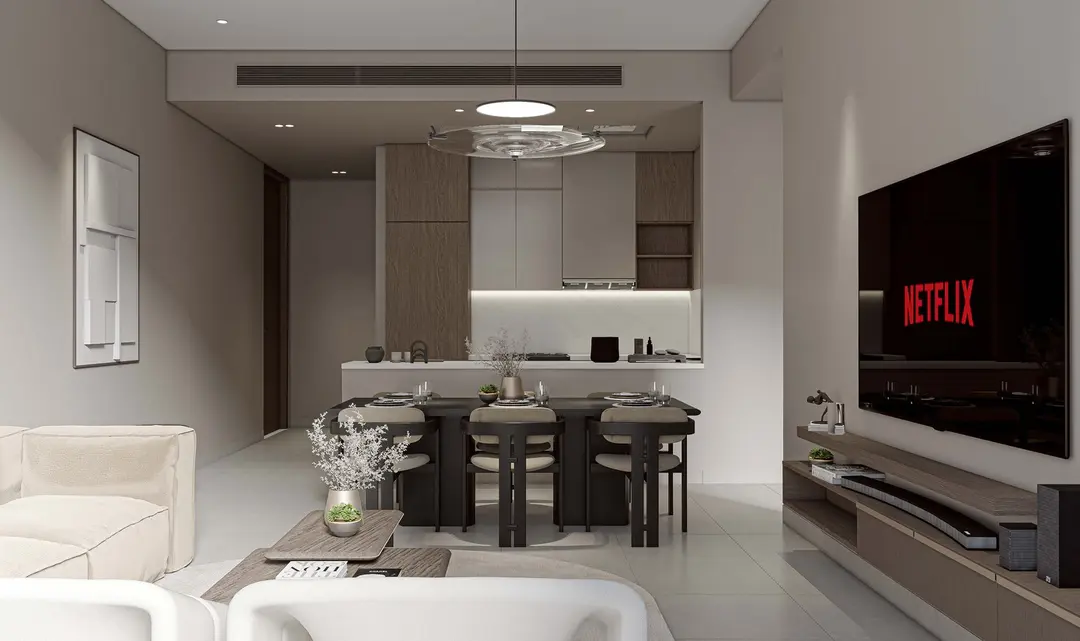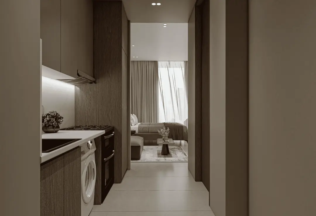 Inside, the residences range from smartly designed studios to spacious one- and two-bedroom apartments. Interiors are planned for maximum comfort and efficiency, combining open layouts, abundant natural light, and refined finishes. Each unit reflects a balance of style and functionality, ensuring a home environment that feels both sophisticated and welcoming.