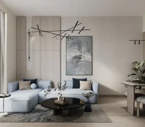 Interiors are completed with modern, high-quality finishes that reflect a clean and contemporary design language. Materials are selected in neutral, natural tones to enhance light and create a calm residential atmosphere. Kitchens are designed with sleek cabinetry, durable worktops, and integrated layouts focused on functionality and everyday use. Apartments are delivered with full furnishing.