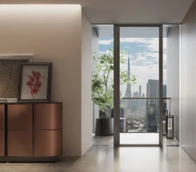 Inside, each residence is a curated masterpiece of spatial harmony and refined detail. The interiors feature a warm, elegant palette of natural materials — caramel tones, wood accents, fluted glass, and soft marble — blending form with function. Open-plan layouts, expansive windows, and column-free spaces create fluidity and openness, offering an atmosphere of quiet luxury in every room. From bespoke kitchens to spa-like bathrooms, every element reflects a deep commitment to design excellence.