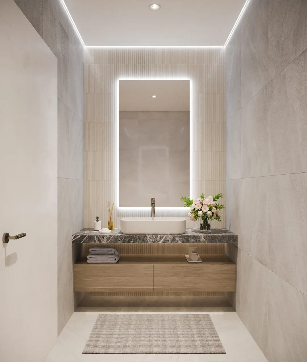 The residences offer expansive layouts with natural stone finishes, panoramic terraces, and floor-to-ceiling windows that flood the interiors with light. Soft neutral tones, high-end materials, and harmonious textures create a sense of openness and refinement throughout. Indoor and outdoor spaces flow into each other, offering uninterrupted views of the Arabian Gulf and inviting serenity into daily living. Every detail is crafted to elevate comfort, beauty, and a deeply personal connection to the coastal environment.