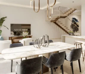 The interiors of Nad Al Sheba Gardens Phase 11 are crafted to inspire warmth, comfort, and modern refinement. Open-plan layouts with double-height ceilings and expansive windows allow natural light to flood the living spaces, creating an airy and inviting atmosphere. Elegant family rooms, spacious bedrooms with walk-in closets, and ensuite bathrooms offer a blend of privacy and sophistication. Every detail — from thoughtful zoning to seamless indoor-outdoor flow — is designed to elevate daily living into an experience of lasting elegance.