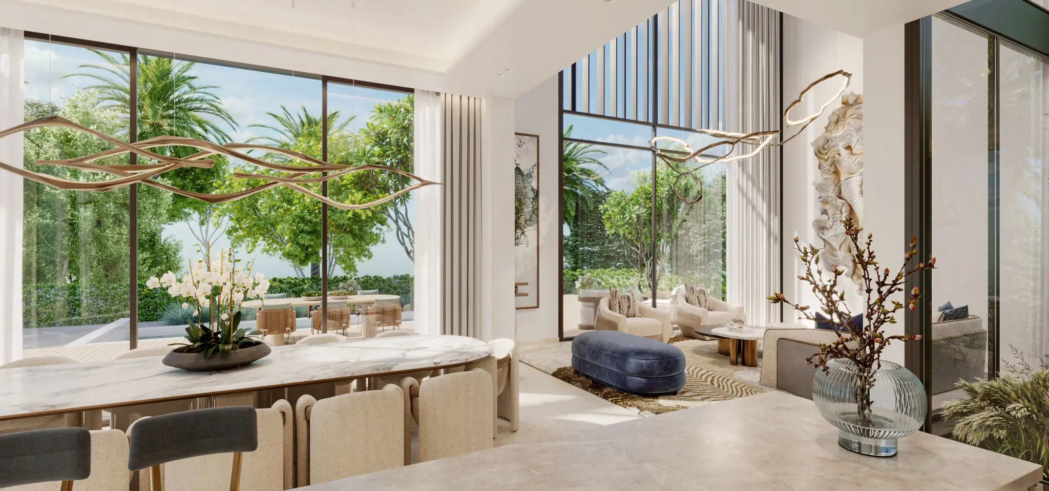 Nad Al Sheba Gardens Phase 11 by Meraas continues the legacy of timeless elegance and contemporary sophistication. The gated community combines modern design with a serene natural setting, offering a lifestyle that celebrates both privacy and connectivity. Each villa and townhouse is defined by refined architectural language — clean lines, bronze metallic screens, and wide glass facades that create a bright, open aesthetic. Set amidst landscaped greenery and peaceful pathways, the development embodies Dubai’s vision of luxury suburban living in perfect harmony with nature.