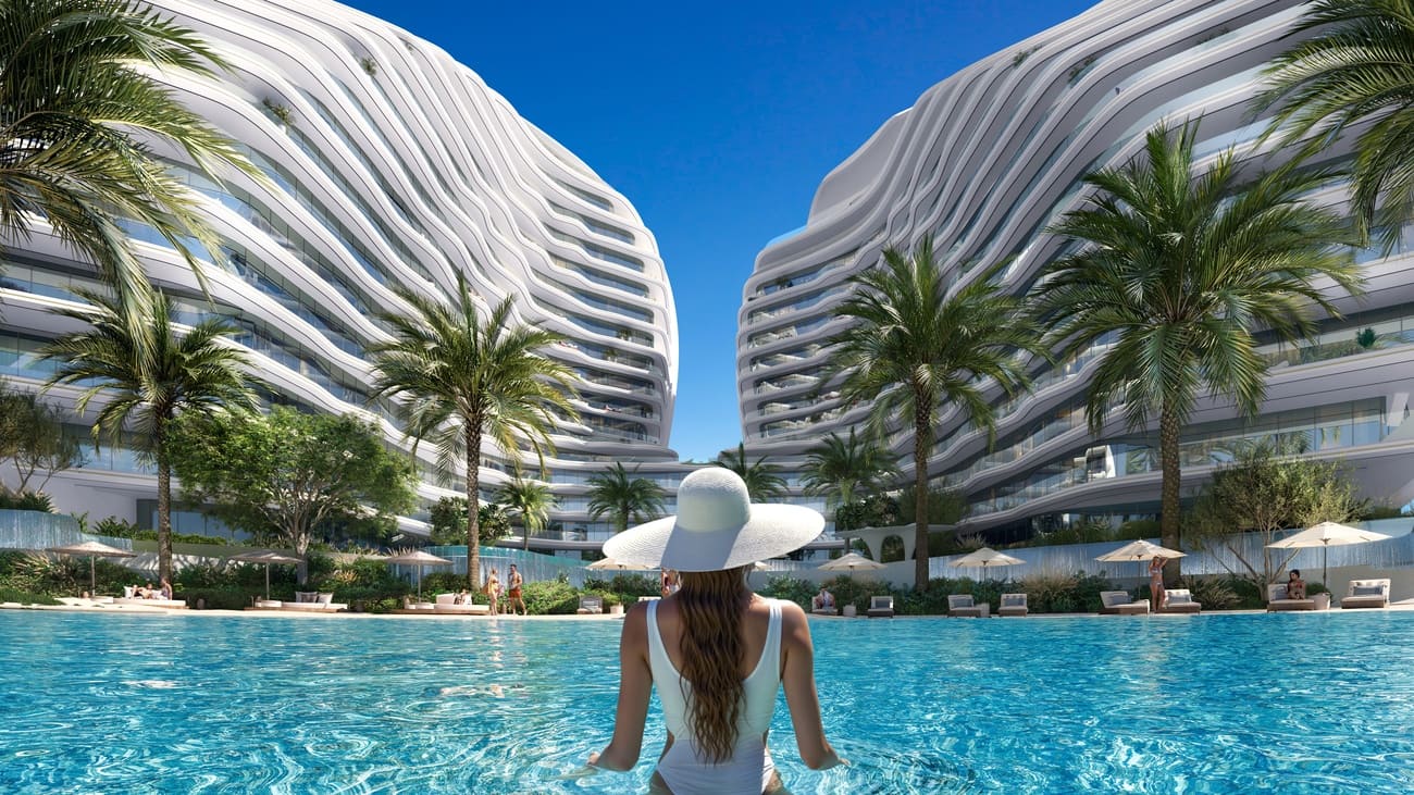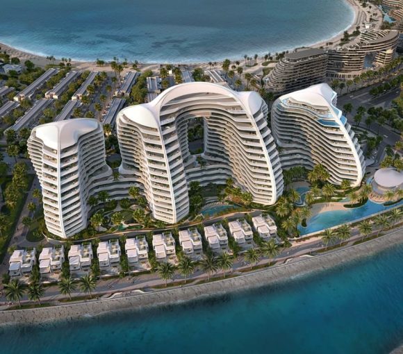 Designed a s a living sculpture, Oystra embodies the idea of movement. Its curved facades, flowing balconies, and seamless transitions are inspired by the natural flow of water. This visionary approach allows the building to blend effortlessly with the surrounding landscape while standing out as an iconic structure on Al Marjan Island.