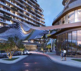 Witness a skyline transformed by the architectural masterpiece, featuring interconnected towers and the iconic Sky Bridge. This AI-enhanced marvel doesn’t just connect buildings; it weaves together lush gardens and dynamic social spaces, creating a sky-high community. The design, with its elegant Champagne cladding and glass, mirrors the lagoon’s tranquility and the captivating sunsets, pro luxurious living experience.
