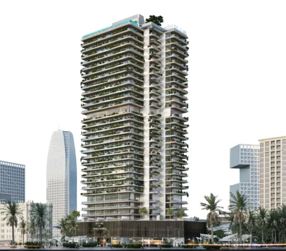 Sky Line by Peace Homes rises as an architectural statement of modern luxury, distinguished by clean contours, cascading green terraces, and an iconic vertical silhouette. The tower’s exterior harmonizes natural elements with contemporary aesthetics, creating an elevated urban oasis. Expansive balconies wrapped in lush greenery and panoramic glazing ensure every residence enjoys a seamless indoor-outdoor connection, while the layered faсade gives the building a sculptural, dynamic presence on the skyline.