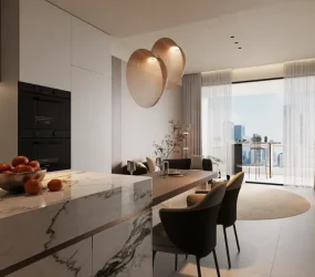 Inside, the apartments are crafted to create cozy and tranquil homes, where living and dining spaces serve as sanctuaries for relaxation and social gatherings. The bathrooms are designed as spaces for indulgence and rejuvenation, reflecting the building’s commitment to comfort and luxury. Stamn One offers a lifestyle that not only respects the past but also embraces the future, making it an ideal retreat for those seeking both cultural depth and modern convenience.