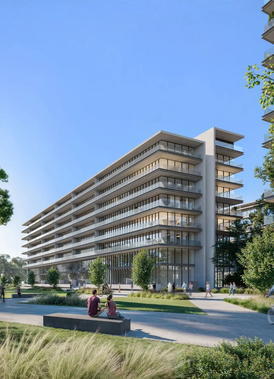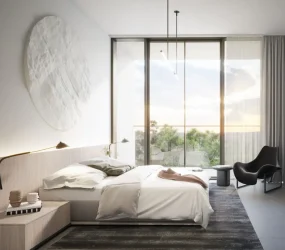 Inside, The Gate 5 presents a curated selection of residences ranging from elegant one-bedroom apartments to spacious family homes. Each unit is equipped with smart home technologies and premium European kitchen appliances, including a cooker, hood, and washer dryer. Many homes feature “winter gardens”, extending the living area seamlessly onto the balcony, creating bright and airy interiors that celebrate both indoor and outdoor living. The design emphasizes natural light, open layouts, and a refined aesthetic that perfectly complements the urban surroundings.