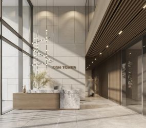 The Icon Tower features approximately 300 apartments ranging from studios to 3 bedroom apartments, penthouses, and townhouses, all spreading across 17 residential levels, a podium level hosting a community swimming pool and residential units, an aground level with parking spaces and drop-offs, and 2 basement parking levels.
