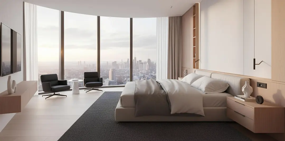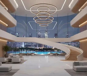 The amenities are shaped to reflect the grace and smooth motion of life onboard a yacht, featuring soft curves, warm lighting, and expansive glazing that fills every space with natural light. Each floor is imagined as its own “deck,” offering a seamless flow that enhances privacy, movement, and the feeling of five-star living. Shared areas encourage relaxation and meaningful connection, wrapped in an atmosphere of effortless sophistication and elegant design.